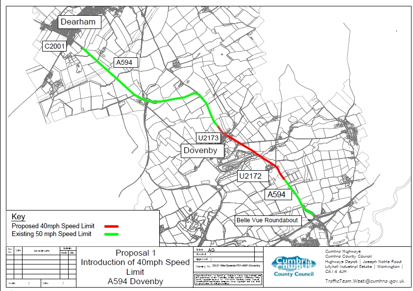 Speed Limit - Dovenby A594 Dovenby 11/02/2022 The Dovenby speed limit was implemented in early 2023.This was considered necessary due to the number of accidents and the number of incidents of excessive speed on this dangerous sector.